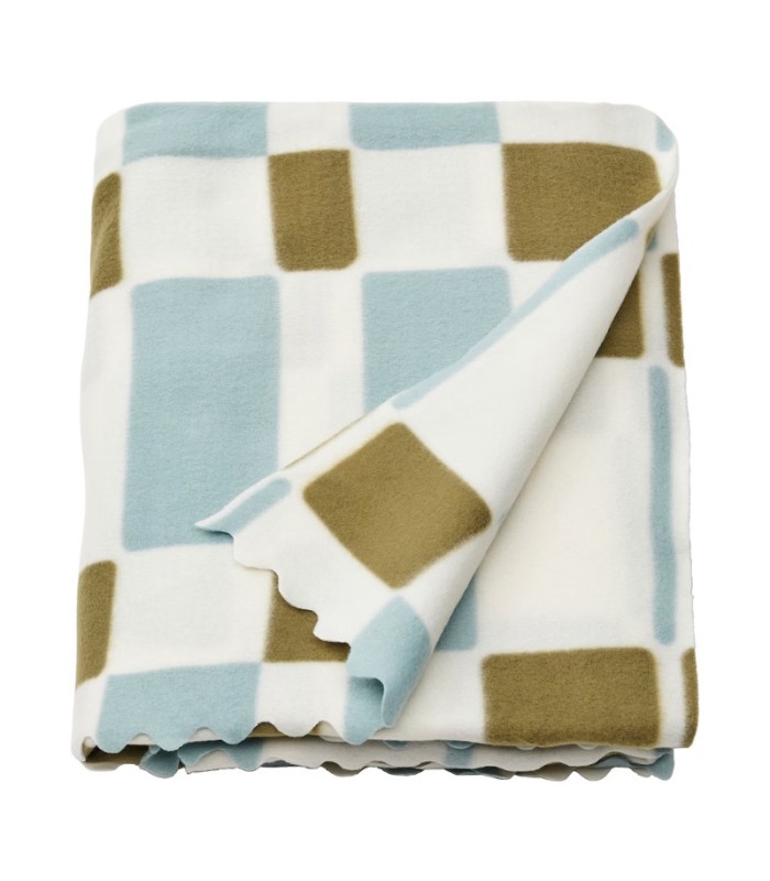 این محصول ایکیا با نام “SVARTFIBBLA ” یک پتو و رو انداز ، با پارچهای نرم و با رنگ سبز /آبی روشن و سفید ، به ابعاد 120×160 سانتیمتر است.