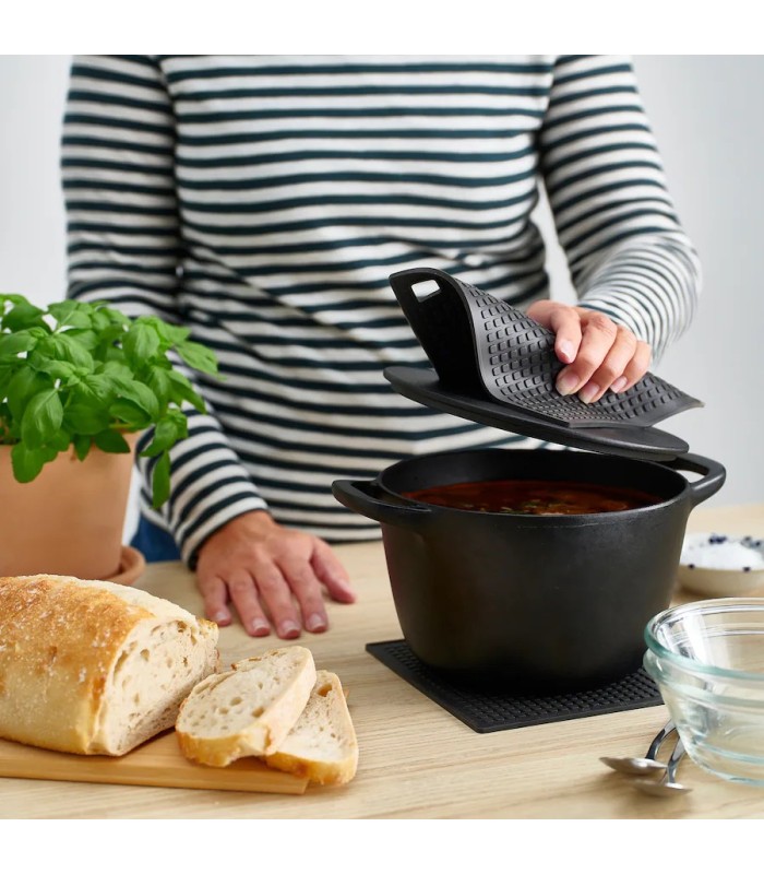 اگر به دنبال یک زیر قابلمه شیک، مقاوم، چندکاره و بادوام هستید، زیر قابلمه سیلیکونی ایکیا مدل SANDVIVA با طراحی اسکاندیناویایی و رنگ مشکی تیره، انتخابی مدرن و کاربردی برای آشپزخانه شماست. این محصول نهتنها از سطوح در برابر حرارت محافظت میکند، بلکه حس نظم، ظرافت و مینیمالیسم را نیز وارد آشپزخانهتان میکند.