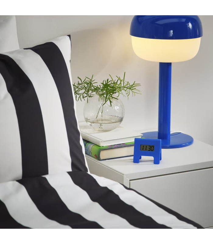 • ساعت هشدار ایکیا مدل KUPONG یک ساعت زنگ دار کوچک و منظم به رنگ ابی است – به راحتی می توانید جایی برای آن روی میز کنار تخت پیدا کنید یا در سفر همراه خود داشته باشید.
